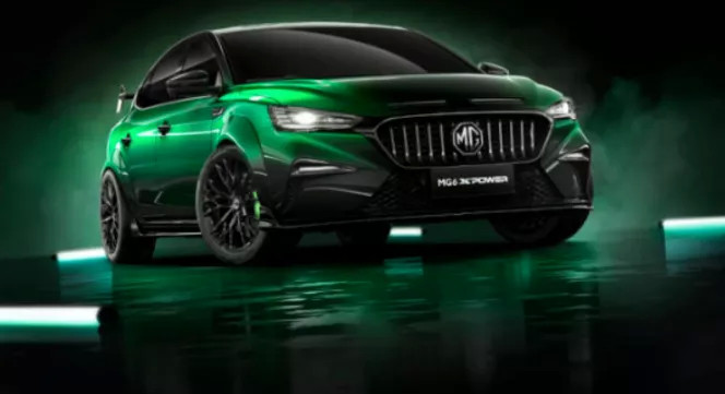 名爵6 XPOWER是基于MG6打造而来,不过整体造型上就要夸张得多,设计方面也参考了MG TCR赛车,外观部分采用“骐骥绿”色手工金属漆,配合黑色渐变风格,十分张扬,具有很高的辨识度。中网内部采用了大面积的黑色亮面设计,压低眼睑的LED数字光轨大灯,看上去非常犀利。在配合造型夸张的下包围,以及风刀、导流槽等等,视觉冲击力十足。尾部也配备了热压罐干碳工艺一体成型尾翼,在极速下还可提供最大84kg的下压力。动力部分则是由1.5T发动机+电动机组成的插混系统,综合最大功率305马力,最大扭矩480N·m。匹配10速EDU第二代智能电驱变速箱,官方给出的0-100km/h加速时间仅需6秒。