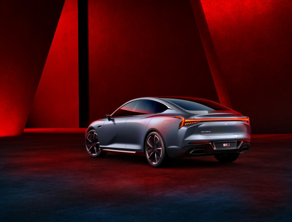 而在车尾部分,新车则有着同样时下流行的贯穿式尾灯,灯带两侧则有着特殊的光源造型,进一步增强了辨识度。除此之外,尾箱盖末端有着翘起的小鸭尾,下端向内凹陷的尾箱盖等元素,都显得立体感极强。后保险杠部分仍然有着双边双出排气装饰,显示了该车并非只有纯电动车型。