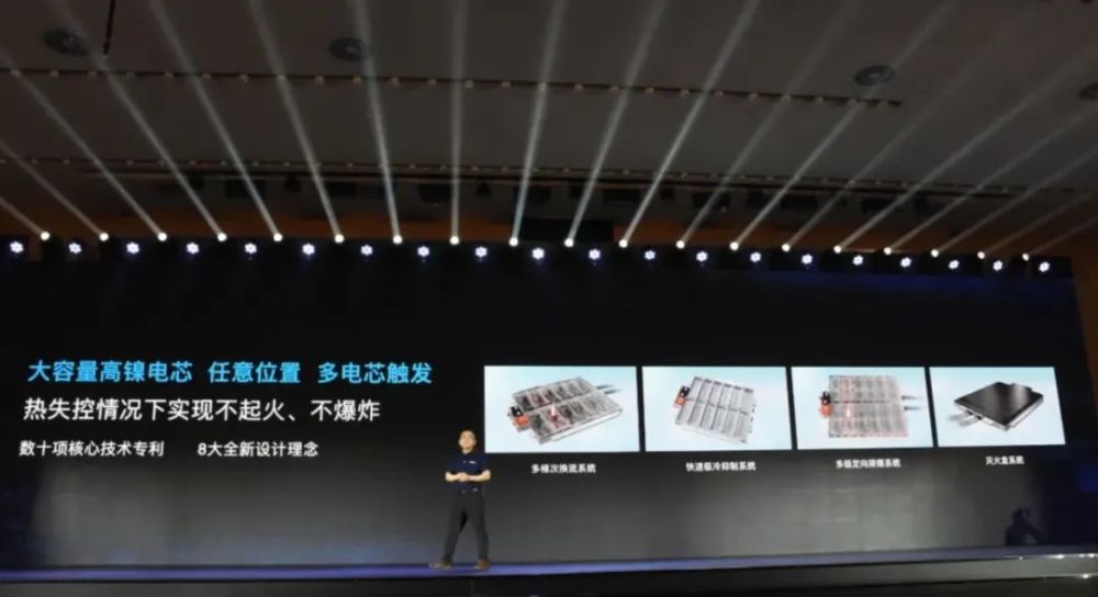 这款电池通过搭载多梯次换流系统、快速极冷抑制系统、多级定向排爆系统、灭火盒系统等全新设计,让电池在热失控情况下实现不起火、不爆炸,所排出的烟气温度也控制在100℃左右。