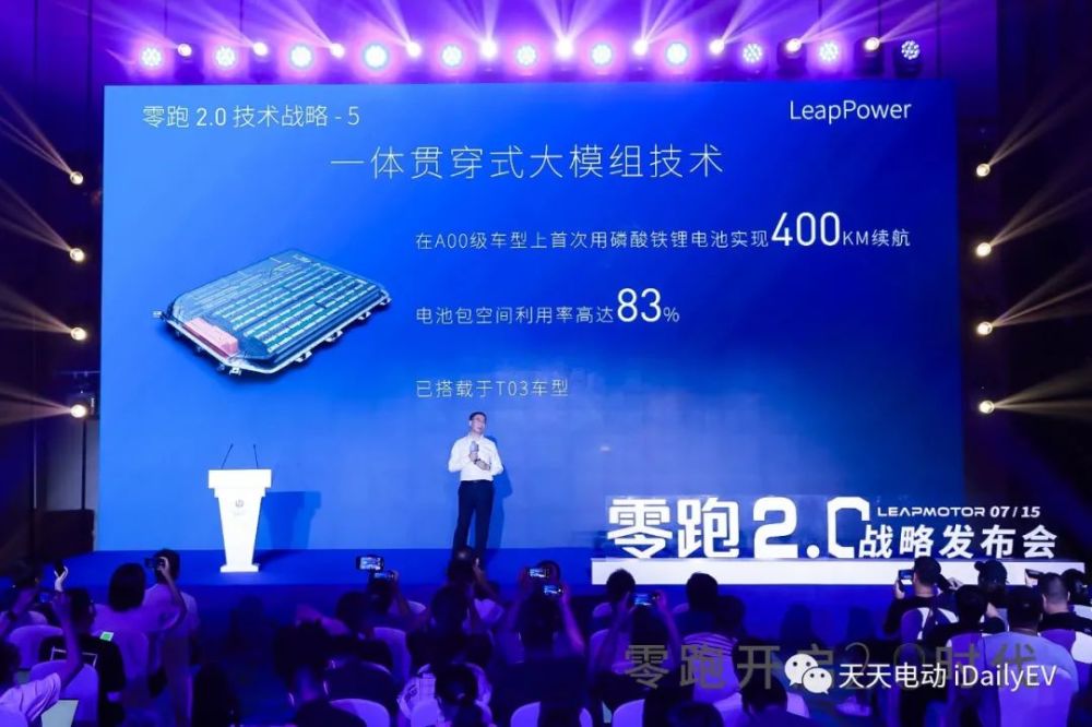 在电池方面,零跑目前已经推出一体式贯穿大模组,该电池包空间利用率高达83%,已应用于T03车型。