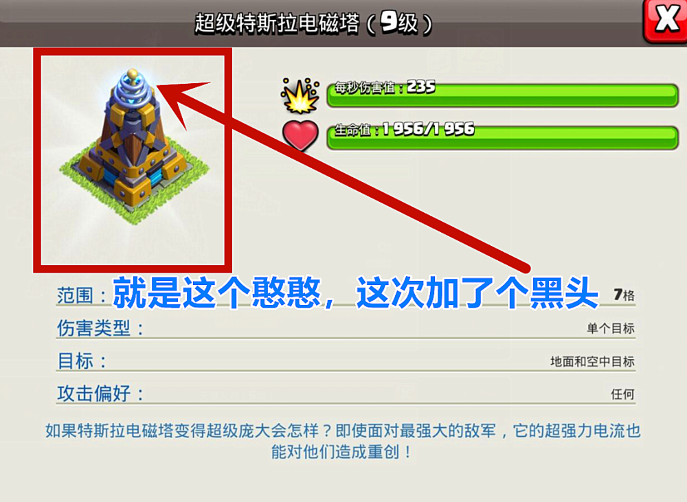 我们对比“超级特斯拉电磁塔”除了背景没有上图黑以外,在建筑的框架部分真的是一模一样,其中最大的区别就是“超级特斯拉电磁塔”的线圈是“银白色”而上图的“电磁塔”线圈的颜色是“黑”色,这难道会是一个新的等级,按照以往官方的操作来看可能性非常大。