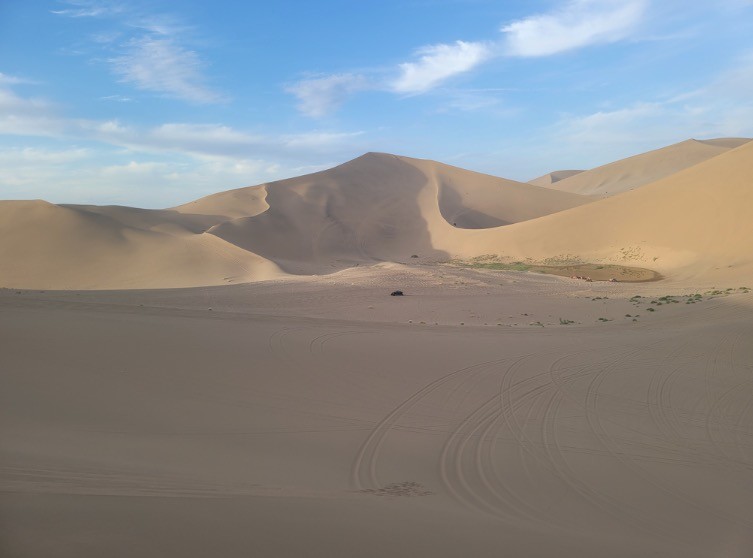 其实这次出行的路段环境并不是太复杂,毕竟城市SUV与纯粹越野还是差着很大的差距,更不要提像炫界Pro这种小型城市SUV,这次形式路段多为硬沙粒路面以及戈壁滩路面,并没有细软沙漠复杂路段,但是对于这辆小型城市SUV的考验还是很大的,而这次活动的目的,就是探索炫界Pro的极限,以及感受敦煌的西域风情。