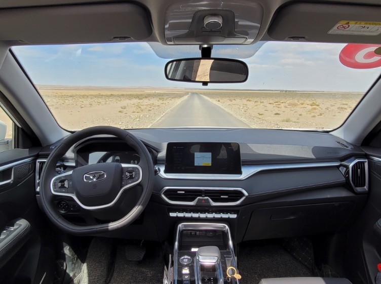 从历史记忆中回到现实,手握着炫界Pro的方向盘,感受着从路面传递过来的细微感受,其实在试驾过程中,这套动力总成给我的感受更多的是舒适。戈壁滩的硬颗粒路面只是证明这辆车的极限很高,而铺装路面才是这辆车的重中之重。炫界Pro的第一感受就是转向非常轻盈并且没有虚位,而油门踏板的力度适中,所以这辆车开上去非常的轻盈舒服,而在110km/h以上的时速时想要做超车动作,这辆车也能给你带来源源不断的动力,并且炫界Pro搭配的模拟9速CVT的变速箱非常平顺,在日常常规行驶中,发动机转速永远抑制在2000rpm以下,这让炫界Pro有着非常高的燃油经济性。