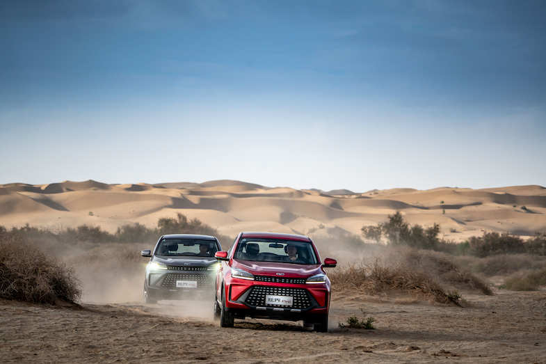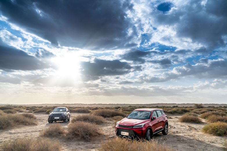 初入戈壁滩时,其实还是有些小担心的,但是炫界Pro的表现让我越开越有自信,麻雀虽小五脏俱全,并且小腿还非常壮实。依托奇瑞鲲鹏动力麾下的1.5T发动机,最大功率115kW,能爆发出230N·m的峰值扭矩,在硬颗粒路面行驶游刃有余,毕竟拥有SUV的底子,炫界Pro的悬架系统支撑平衡到位,底盘扎实不松散,轿车不敢去的地方,炫界Pro可以毫无畏惧。