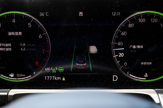 在巡航时,它可以自动进行车道居中保持,小幅度的弯道,方向盘可以自动修正。此时,驾驶员可以达到解放双手双脚。它还能识别前方车辆,如果前方车辆比较慢,它会提前进行减速,减速过程衔接顺畅,不会突然让人不舒适。而且行驶途中,踩上刹车仪表盘会出现红色背景,并且在HUD以及仪表盘会同步出现预警提示。