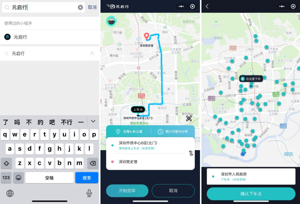 2021年7月19日,深圳市福田区与元戎启行合作,正式为公众提供RoboTaxi(自动驾驶汽车)载人应用示范服务。即日起,深圳市民可通过微信公众号“元戎启行DeepRoute”申请乘车邀请码,收到邀请码后用小程序“元启行”下单,体验RoboTaxi出行服务。