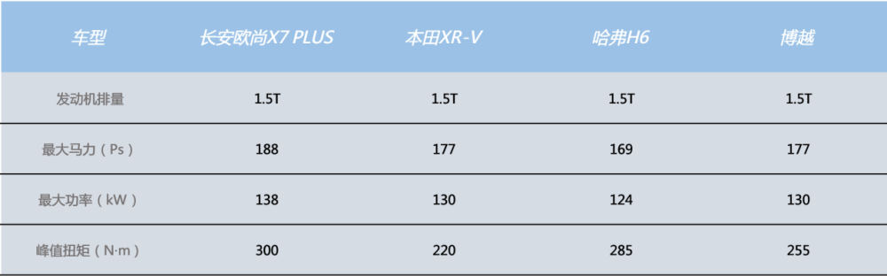既然是PLUS车型,动力自然也要做到PLUS。长安欧尚X7 PLUS搭载蓝鲸新一代NE1.5T高压直喷发动机,峰值功率138kW,峰值扭矩300N·m。这是怎样的概念呢?多说无用,数据就是最好的证明。