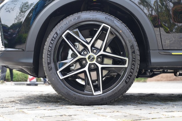 前脸采用了全新的星耀龙鳞格栅,和现款车型相比,它进行了上下打通,面积增大之后显著提升了整体的视觉张力。同时内部的龙鳞纹使用了烫印嵌套工艺,增加了格栅的立体感。而头部的碳纤维饰板搭配上荧黄色的饰条,使得整体更具时尚气息。