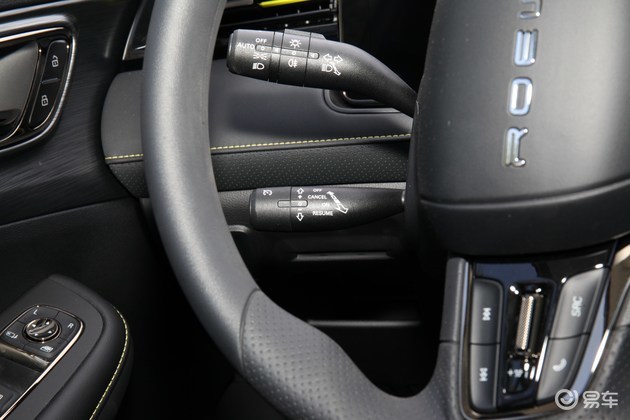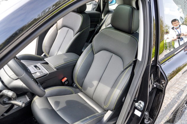 座椅采用了真皮进行包裹,同时在细节方面加入了纹理和荧黄色缝线的勾勒,进一步提升了整体的视觉效果。功能方面提供主副驾座椅的电动调节和加热功能。