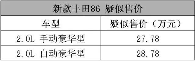 近期有一个让广大粉丝欣喜的消息,据悉丰田86即将重新返回中国市场,最快将于4月份召开的上海车展上亮相,指导价27.78-28.78万元,和当初售价保持一致,当初嚷嚷着要为情怀买单的朋友,这次机会来了可以行动了。
