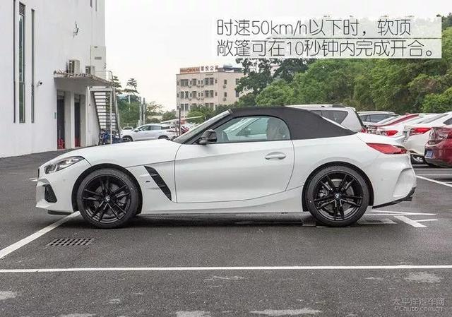 2018年8月,全新一代宝马Z4 M40i First Edition在美国的圆石滩首次亮相,8个月后的上海车展上,宝马Z4首次在国内亮相并公布了售价,新车共有3款车型,售价区间为48.88-63.38万元。近日,我们在经销商处实拍到了2019款 sDrive 25i M 运动曜夜套装版,下面通过组图来了解一下这款软顶敞篷跑车。