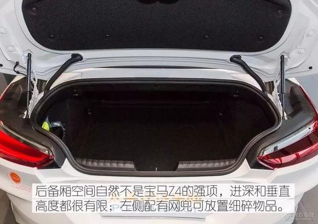 对于两座跑车来说,储物空间并不是我们所追求的,但如果从实用的角度出发,全新宝马Z4还是可以满足我们的储物需求的。乘坐空间方面表现也不错,顶篷不打开的情况下,坐在里面也不会感到压抑。