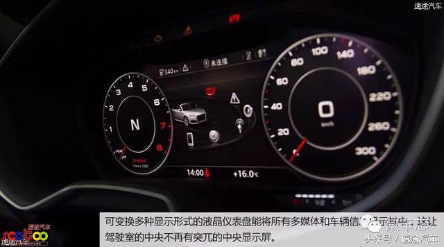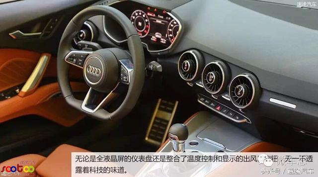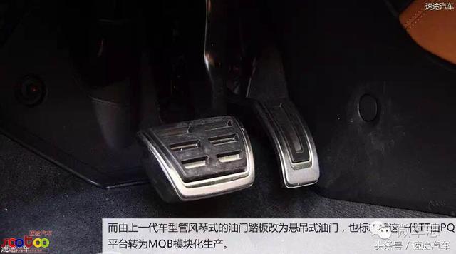 可变换多种显示形式的液晶仪表盘能将所有多媒体和车辆信息显示其中,这让驾驶室的中央不再有突兀的中央显示屏。而由上一代车型管风琴式的油门踏板改为悬吊式油门,也标志着这一代TT由PQ平台转为MQB模块化生产。虽然是辆敞篷跑车,但奥迪仍为它配备了B&O扬声器。
