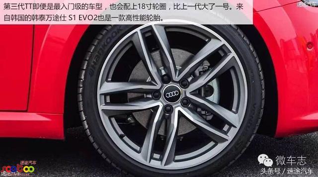 第三代TT即便是最入门级的车型,也会配上18寸轮圈,比上一代大了一号。来自韩国的韩泰万途仕 S1 EVO2也是一款高性能轮胎。