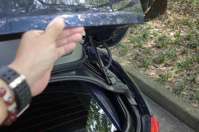 反映出来的症状就是,你得用很大的力气抬起后备箱。我都不敢单手抬起,怕把这个宝马标给抬坏了,另一只手习惯性地得抬着后备箱下缘帮忙开盖。