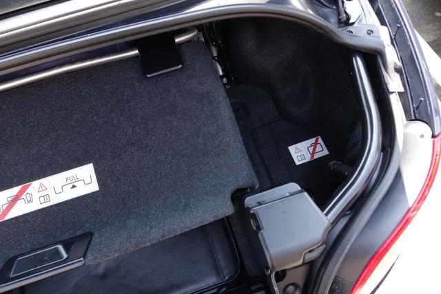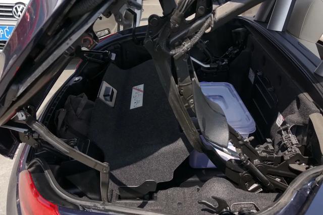 中间有一个“乌龟壳”,这个壳子是用作行李空间限位器的,只有在壳子放下(如上图)的时候,篷子才允许收进后备箱。当你需要放入更多、更高的物品时,就可以把壳子抬起来,但这时车子也会收到一个信号,自动禁止执行敞篷动作。