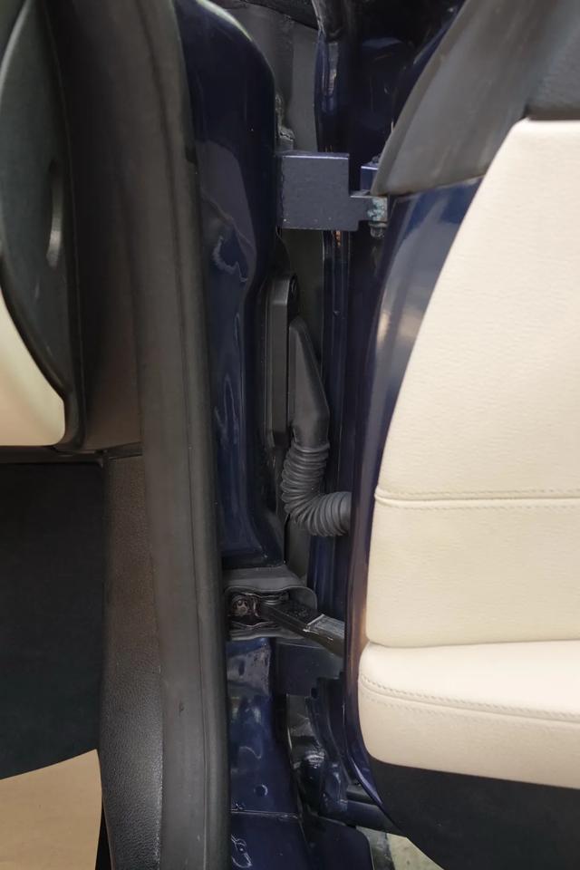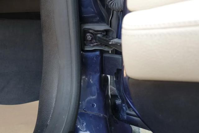 至于上铰链呢,这里的车身基底没有变形,虽然记录显示上铰链也更换了,但是我怀疑并没有更换。