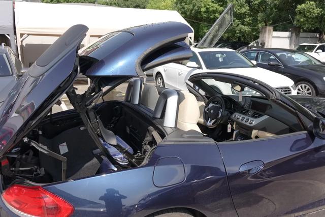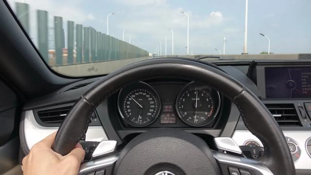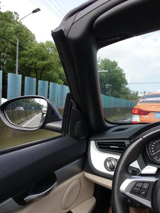 和很多敞篷车不一样的是,这一代Z4允许在行驶中开关顶篷,只要车速慢一些就好。我在拥堵的车流中测试过两次,感觉周围司机的目光都被我吸引过来了。当时的车速估计在10-12km/h,怎么形象描述呢?你不踩油门直接D挡爬行的车速肯定是可以开关顶篷的。这下好懂了吧?哈哈。