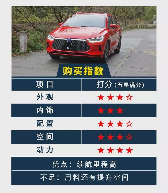 作为一款纯电动车型,操控和续航还是需要着重看的,大咖试驾的比亚迪e2是高续航版本。其搭载了永磁同步电机,最大功率70kW,峰值扭矩180N·m,0-50km/h加速仅需3.9秒,拥有高达405公里的综合续航里程。