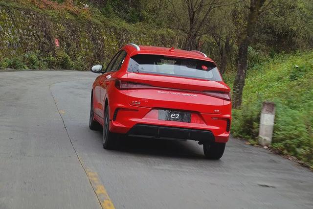 好在比亚迪e2的油门踏板比较灵敏,在陡峭的山路上,动力都可以做到随传随到。而制动踏板也不会过硬和过软,制动效果不会有刹车就点头的感觉。悬挂方面,比亚迪e2采用了前麦弗逊独立悬挂+后扭力梁非独立悬挂。这套悬挂可以过滤山路上的一些小碎石带来的颠簸,整体操控感都比较好。