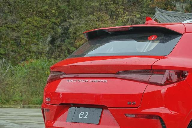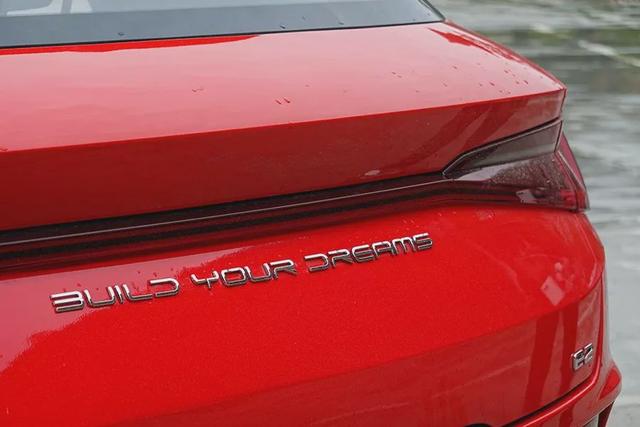 车尾部分的线条棱角分明,比普通紧凑型车的尾巴都要高,并沿用了家族的贯穿式LED尾灯设计,中间贴有“build your dreams”的标识。