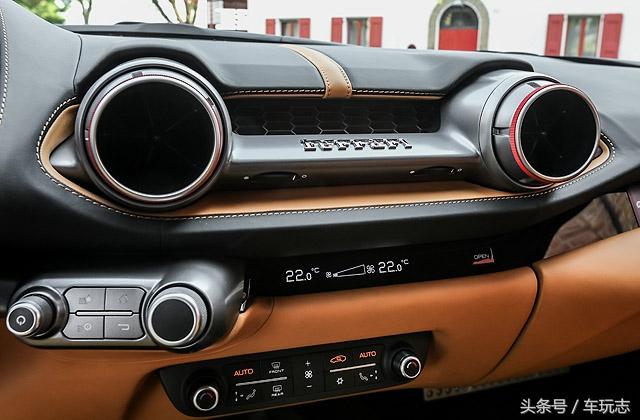 方向盘的后方,正中央则为红线区从9,000转开始 (F12berlinetta的红线区从8,500转开始)、表底10,000转的转速表,转速表左侧则为5吋的VDA (Vehicle Dynamic Assistance) 车辆动态辅助系统显示萤幕,可切换显示时速、油量、油温、油压、水温及电压等行车资讯,以及驾驶人Manettino操控模式旋钮的模式;右侧则为另一只同为5吋的HMI液晶显示萤幕,可切换显示导航、通讯、空调及娱乐系统等功能,并提供Apple Carplay智慧手机连接功能,而且两个显示萤幕的操作旋钮、分别设置在两个萤幕的下方,所以操作起来并不容易搞错。