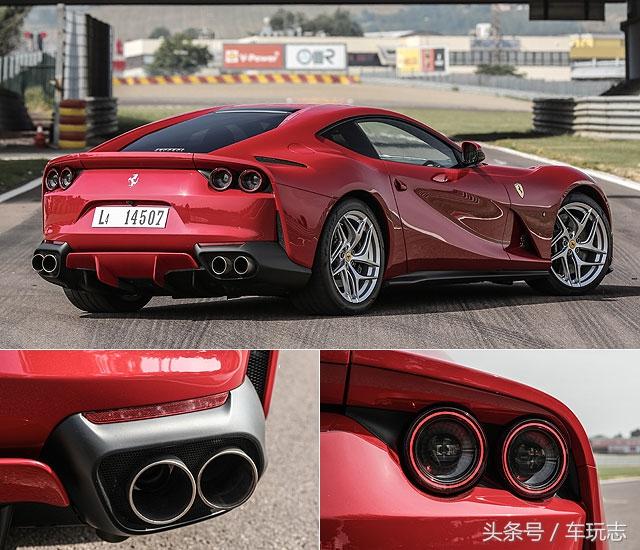 至于车尾造型部分,812 Superfast不仅换上了Ferrari最为车迷津津乐道的传统4圆形LED尾灯组,且顺著灯组外框的两端,于下方对照式的配置了双边/双出式的排气尾管,中间则为一组附主动式翼片、可在高速时下压17度之后底盘分流器,能和车尾行李厢盖后援的上翘尾翼,共同监管车尾的下压力,并让它拥有较F12berlinetta提升30%的下压力 (几乎和F12tdf相当)。