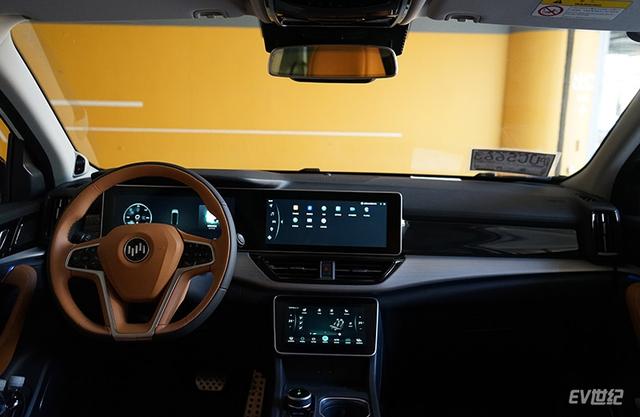内饰方面,威马W6相比EX5和EX6有较大改变,由原来的翼展式T字布局变为时下流行的双联大屏布局。此外,之前车型标配的i-Control中控面板,由额外的第三块触屏替代。中高配车型还使用了丹霞棕配色,在车门扶手、座椅和方向盘上大量使用了棕黄色皮质包覆,提升了车内视觉的豪华感和品质感。