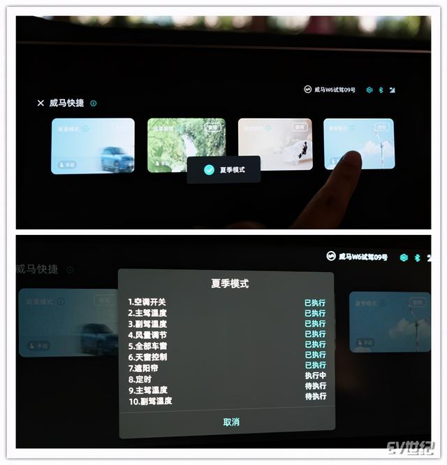 除了HAVP外,威马W6还有一个很有意思的新功能,就是SOA场景编程。这个功能有点像游戏中的“宏”,通过提前对多个功能完成编辑,在发出指令后可以使多项功能同时进行。