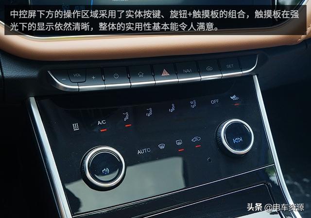 不过两个旋钮的功能分别是调节音量大小以及切歌/调频,跟方向盘上的按键和上方的按键功能都重叠了,只有在通过中控屏打开空调菜单之后,旋钮的功能才会切换为风量和温度调节,但这样的意义并不大,如果能固定为风量以及温度会更好。