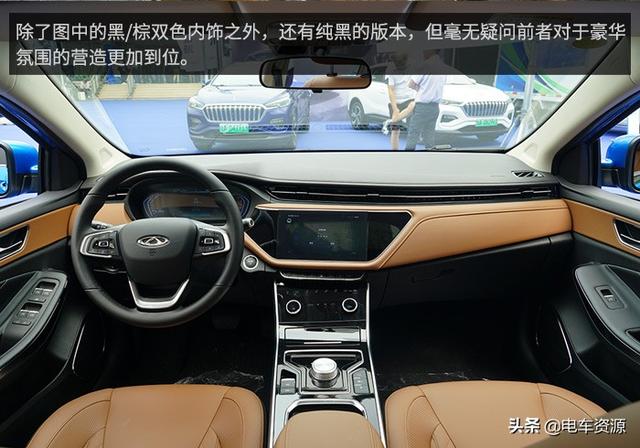 相比于外观,艾瑞泽e的内饰则更让人眼前一亮,车门板与中控台一起形成环抱式设计,非对称的悬浮仪表台覆盖了大面积的皮革,中控台顶部也采用了软质材料打造,并且均带有缝线装饰,整体的豪华感非常突出。