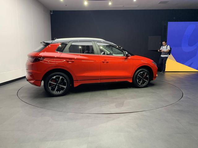 e2车身侧面采用了双腰线设计,看上去十分流畅。新车车身尺寸长宽高分别为4240/1760/1530mm,轴距为2610mm。车辆采用LCB轻量化安全车身科技,整备质量为1250kg,甚至低于同级别燃油车。