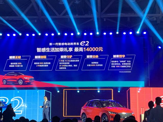 同时,比亚迪汽车销售公司总经理赵长江在现场还宣布,比亚迪为e2车型推出了最高价值14000元的智感生活加乘礼享,包括最低首付20%/18期免息贷款、最高60G免费流量+2年免费云服务、6年或15万公里超长质保+电芯终身保修+24小时贴身响应/到店免费充电、免费赠送价值6000元的充电桩等。