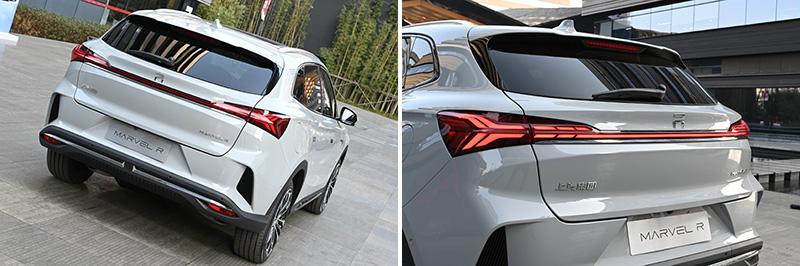 MARVEL R尾部采用了运动型SUV常用的大溜背设计,一个小“鸭尾”尾翼进一步增强了运动感。尾灯组与前脸一样为环形灯带样式,点亮后的效果出众,且两侧加入了似曾相识的Y字形箭翎造型。