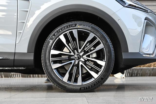 新车采用了双色五辐样式轮圈,立体切割造型为整车的年轻动感增色不少,在轮拱位置还加入了LED灯,用于充电时的一个呼吸灯。轮胎选用了偏向舒适和静音的米其林Primacy 4轮胎,尺寸为235/45 R19。