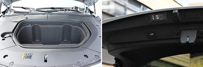 此外新车还配备了可开启的大面积全景天窗、电动尾门,以及前机舱储物格。其中前机舱储物格属于两驱版专属配置,用户可以通过手机APP开启,远程收个快递非常方便。