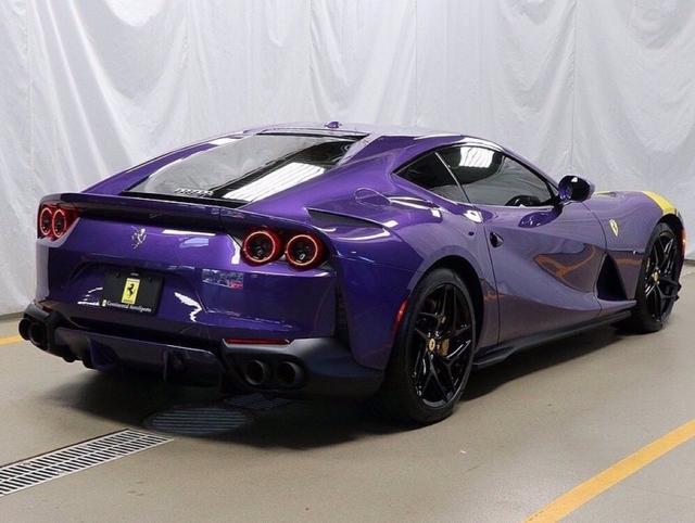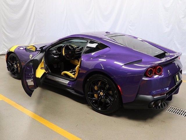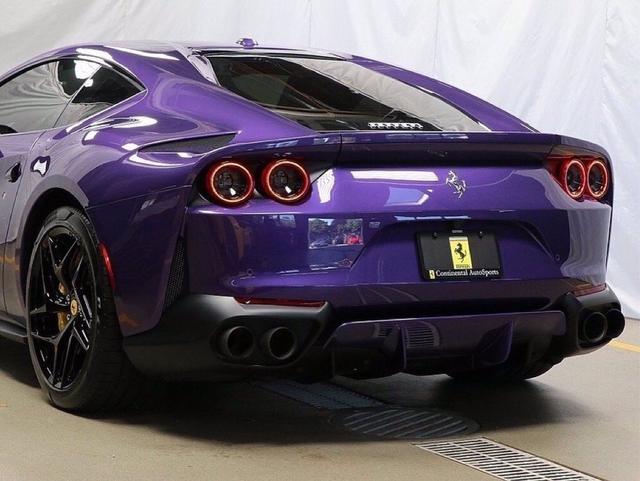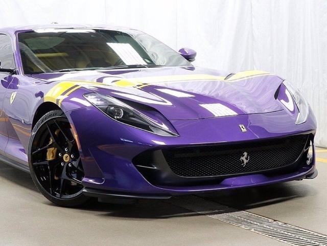 法拉利 812 Superfast 实车,紫色的车漆涂装骚气十足,给人的视觉感也是非常吸睛,开着回头率也是非常高。前脸是赛车化的设计风格,向下倾斜的前脸造型带来了很强的攻击性,下方黑色的网状格栅提升了整车的运动风格,头灯设计较为狭长,内部结构勾画得十分仔细,点亮后的视觉效果也是非常出色。