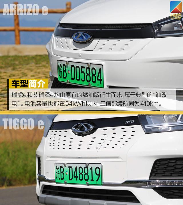 首先介绍一下“背景”,瑞虎e和艾瑞泽e分别由燃油版瑞虎5x和电动车前作艾瑞泽5e衍生而来,都属于典型的“油改电”。前者电池总容量为53.6kWh,后者为53.4 kWh,相差无几的电量储备,带来了时下主流、同为401km的工信部续航(NEDC工况)。不过由于试驾时间有限、路程较短,这两款车的实际续航表现如何,还有待之后与各位网友分享。