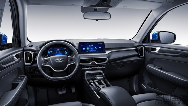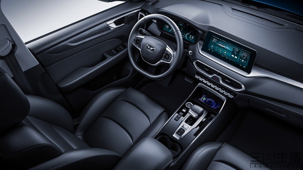 内饰部分采用“翼展式”设计语言,整体布局简洁。全系标配了10.25吋悬浮式液晶中控大屏,其内置了高德地图、QQ音乐、手机映射、倒车影像等诸多应用。液晶屏下方还采用了钢琴式物理按键,配合源自中国传统图案“回纹”的空调出风口造型,以及金属质感饰条,也带来更为精致的内饰氛围。