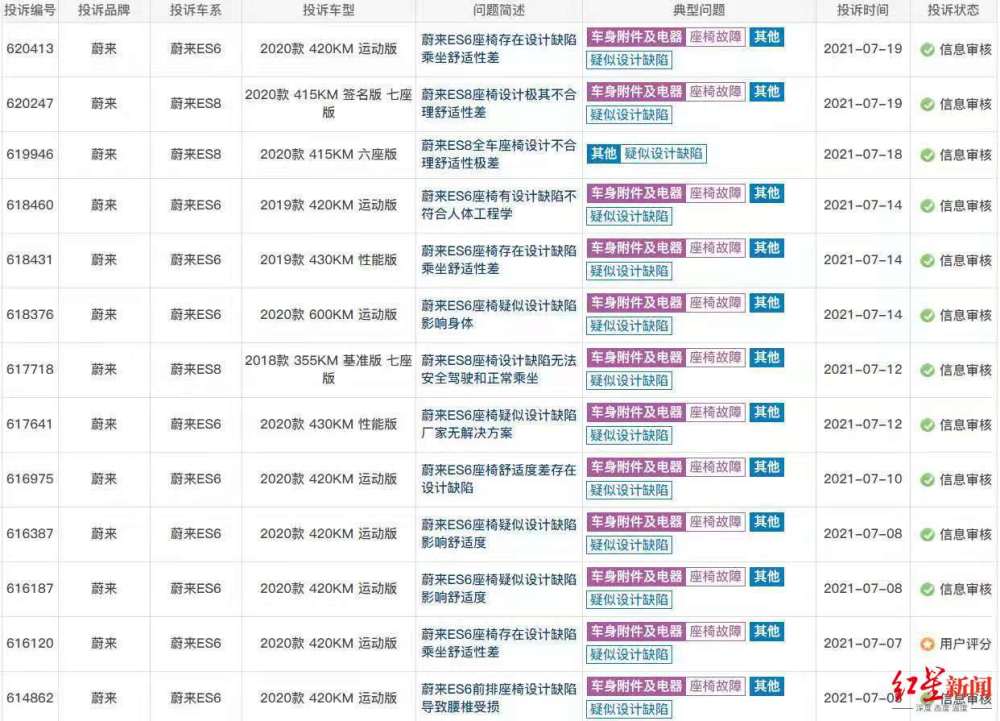 7月20日,蔚来汽车相关负责人回应红星资本局称,这不是设计缺陷。蔚来座椅设计偏运动取向,有些用户有更多舒适性需求,蔚来就此制定个性化方案。