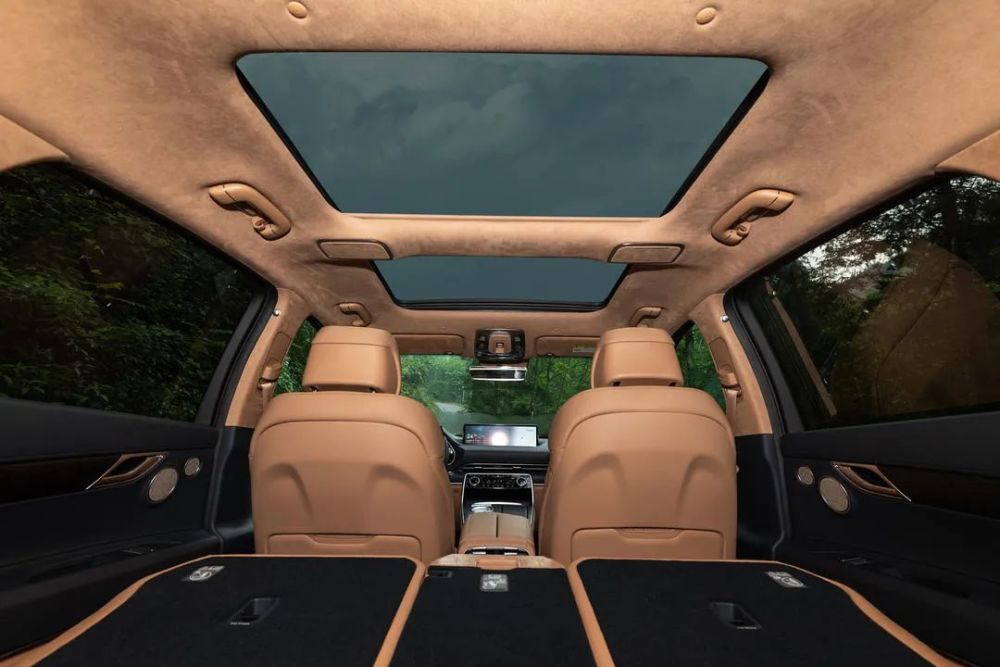 CarPlay、手机无线充电、智能空气净化系统、方向盘加热、双层隔音玻璃、座椅加热/通风以及电吸门等等将配置拉满。三排七座空间提供多种组合形式,第二排座椅可一键开启休闲模式,还可以一键折叠折叠二、三排座椅,使用起来极其便捷轻松。均可以电动调节并且贴心配备了远程通话功能,让后排乘客与驾驶者轻松沟通。
