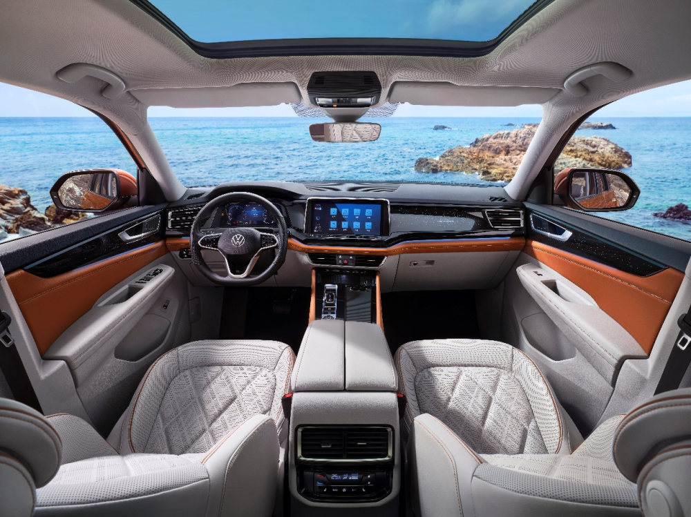 内饰方面,揽境的设计语言和高尔夫保持一致,都是大众最新的设计风格,”拟连屏“的设计很有新意。中控台上大量皮革+缝线的工艺营造出豪华感。在座椅布局上,新车提供2+2+2的6座和2+3+2的7座版本可选。