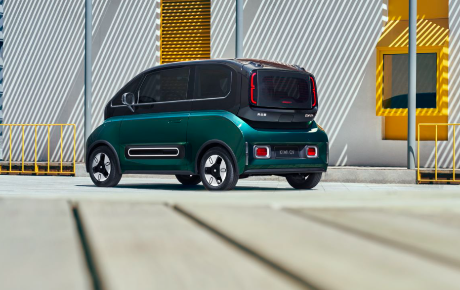 宝骏KiWi EV的外观设计会更倾向于科技感,它的设计语言为“TWO-TONE”,整个车身形成了类似于分体结构的视觉效果。从前脸看,它的前脸正中间位置有两个凹字形设计,让车身的层次感变得更明显,且这个凹字形区域还是该车的“黄金拍照位”,靠在上面能很轻松地拍出大片。两侧的大灯是嵌入式设计,造型为圆角矩形。在侧面,该车的分体设计更为明显,且该车的上下部分车身配色也不一样。同时,该车的配备了欧拉好猫所没有的隐藏式门把手。宝骏KiWi EV的车身结构为3门4座,类似于宝马MINI,车身会更小巧。