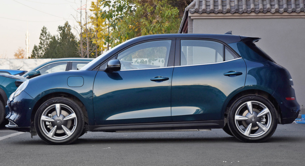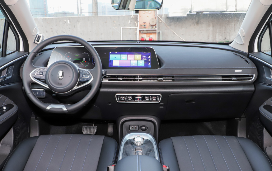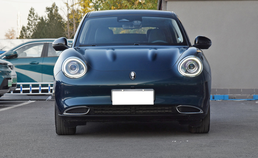 在外观设计上,欧拉好猫的设计算是比较有特点的,它的车头没有明显格栅设计,引擎盖向前的延伸范围比较大,两侧的大灯有较为明显的隆起,形成类似于保时捷青蛙眼的视觉效果。在前唇的两侧,则能看到类似于排气口一般的镀铬装饰,在细节上让它看起来和一般车型不太一样。在侧面,欧拉好猫有较为常规的双色车身,它的车顶和A柱做了双色处理,而车身下方则是常规的车身配色,且整个车身的轮廓线条比较柔和,让整个车身看起来比较可爱。而在车内,欧拉好猫用的是5门5座布局,和本田飞度等车型类似。
