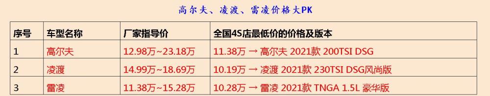 上述所列举的车型中,价格有高有低,其中厂商指导价较低的车型是雷凌,然后是高尔夫,相对较高则是凌渡,事实上,同一款车型的建议零售价是与4S成交价的价格差是很明显的。经查证后得知,高尔夫、凌渡、雷凌的境内最低的落地价低至11.38万、10.19万以及10.28万。三者的价格差距还是比较大的,不知你看中高尔夫还是凌渡呢?最后诚挚祝愿亲爱的伙伴们鸿运当头、财源滚滚。