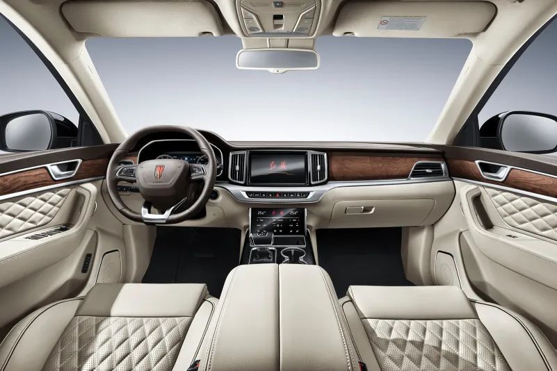红旗HS7的内饰充满了典雅高贵的豪华气息,黑白相间的涂装,搭配上大面积皮质和实木材料包覆,以及细节处的镀铬材质和黑色钢琴漆点缀,高级感呼之欲出。红旗HS7还配备了全液晶仪表和10.1英寸中控屏,内置智能车机系统,科技感较为突出。值得一提的是,搭载3.0升V6机械增压发动机的部分车型,还在前排座椅后部布置了两块大尺寸液晶屏,并搭载空气悬架系统,能够为用户在娱乐性和舒适性上带来更好的体验。