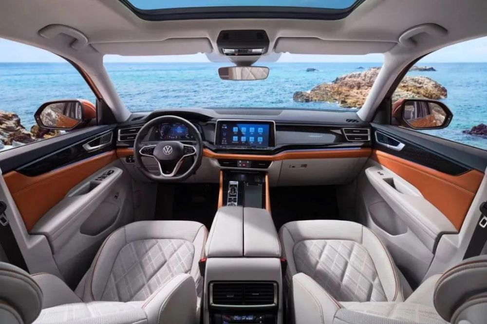 中期改款的途昂在车内也采用了大众最新家族式设计风格,去除了大量实体按键,大部分都变为触控式设计,全面向纯电系列大众ID.家族靠拢。再搭配上10.2英寸全液晶仪表、12英寸悬浮式中控屏和MOS 3.2智能交互系统,科技氛围得到了大幅提升。