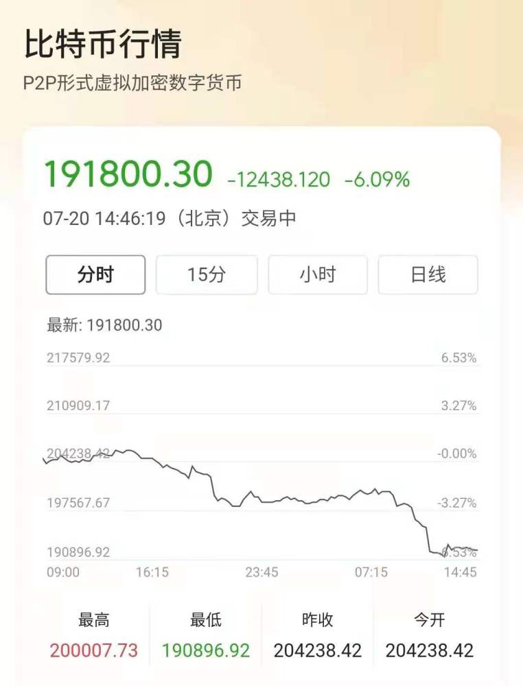 由于官方消息的效应,以及最近一段时间各个国家的货币银行,经济学家持有的看衰态度。不看好和质疑声弥漫整个数字货币圈。终于7月20日比特币盘中大跌,跌幅超过5%.,一度跌落3万美元。