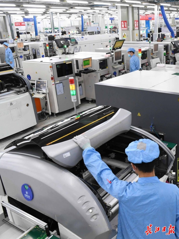 中国信科集团烽火5G智造工厂全自动化的SMT生产线。长江日报记者高勇 摄