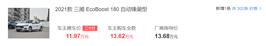 推荐车型:2021款三厢 EcoBoost 180 自动锋潮型